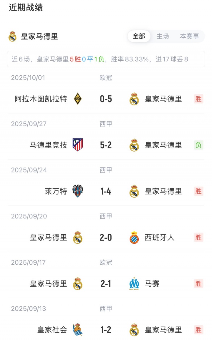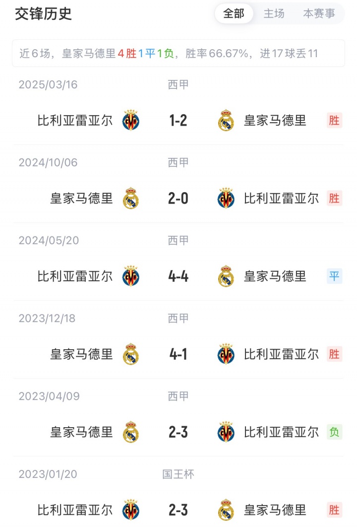 皇马目前6胜1负暂排第二,苏超直播在线观看比利亚雷亚尔5胜1平1负暂排第三。皇马对比利亚雷亚尔已4场不败,上赛季双杀对手。