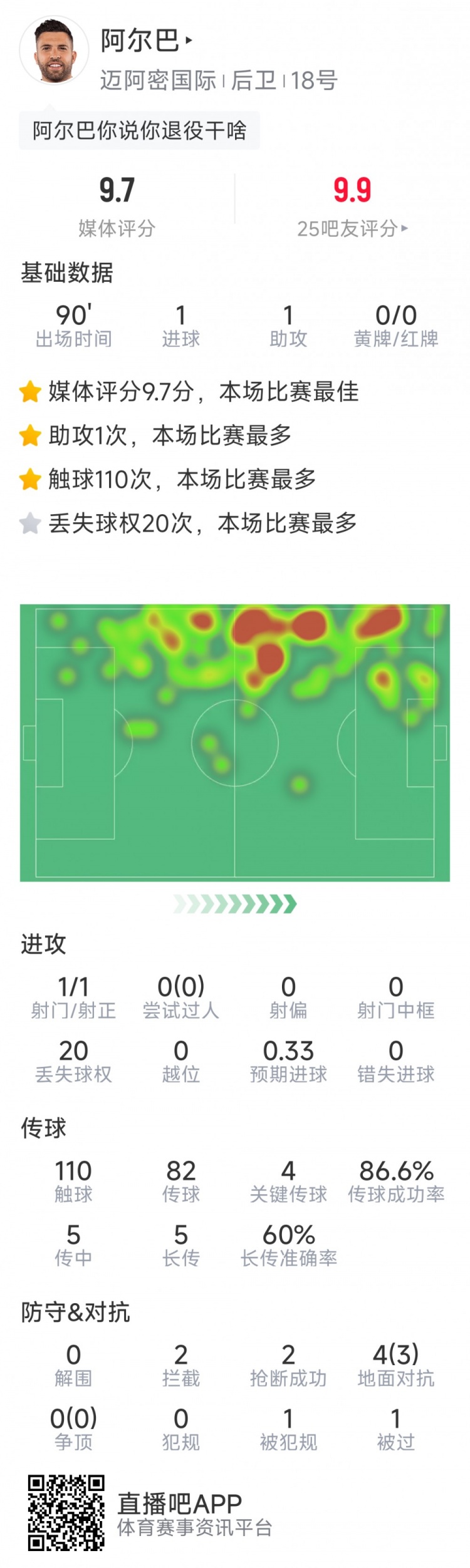 10月12日讯 在美职联补赛,迈阿密国际4-0大胜亚特兰大联,苏超在线直播高清视频无插件此前宣布赛季末退役的阿尔巴表现出色,以下为他在本场数据: