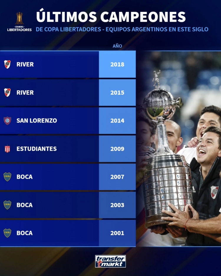 本世纪阿根廷俱乐部问鼎解放者杯: