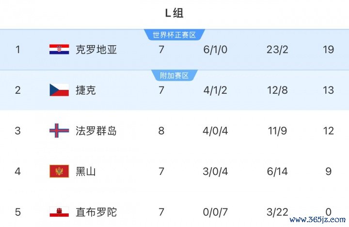 11月16日讯 世预赛欧洲区小组赛L组第9轮,法罗群岛1-3客负克罗地亚,8场小组赛结束后已确定无法进入前二,无缘2026美加墨世界杯赛 。